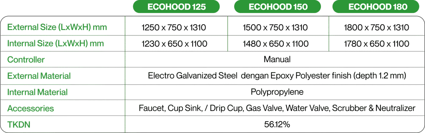 ECOHOOD (Economic Fume Hood) is our cost-effective fume hood solution, designed to meet essential safety standards without compromising on quality.