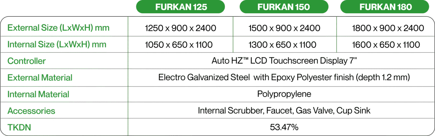 One of the most hazardous activities conducted in laboratories occurs inside a fume hood. The primary purpose of the fume hood is to ensure user safety, in compliance with international standards such as EN 14175 and ASHRAE 110. This product is proudly certified with a Domestic Component Level (TKDN) of 53.47%.